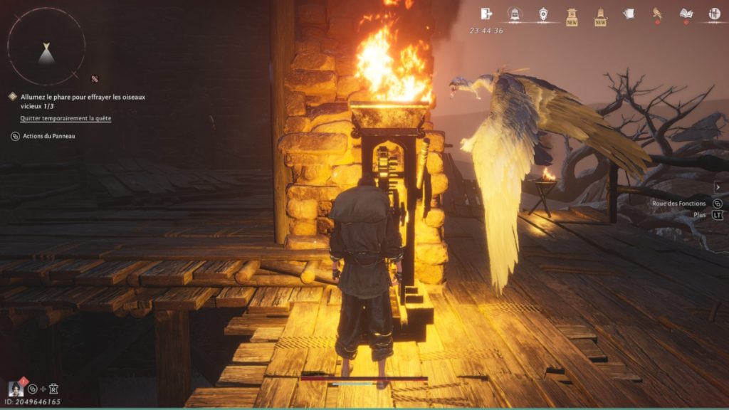 Pour survivre à l’attaque, grimpez rapidement dans la structure par une échelle située à l’intérieur sur la gauche et allumez les torches disposées à différents étages.
