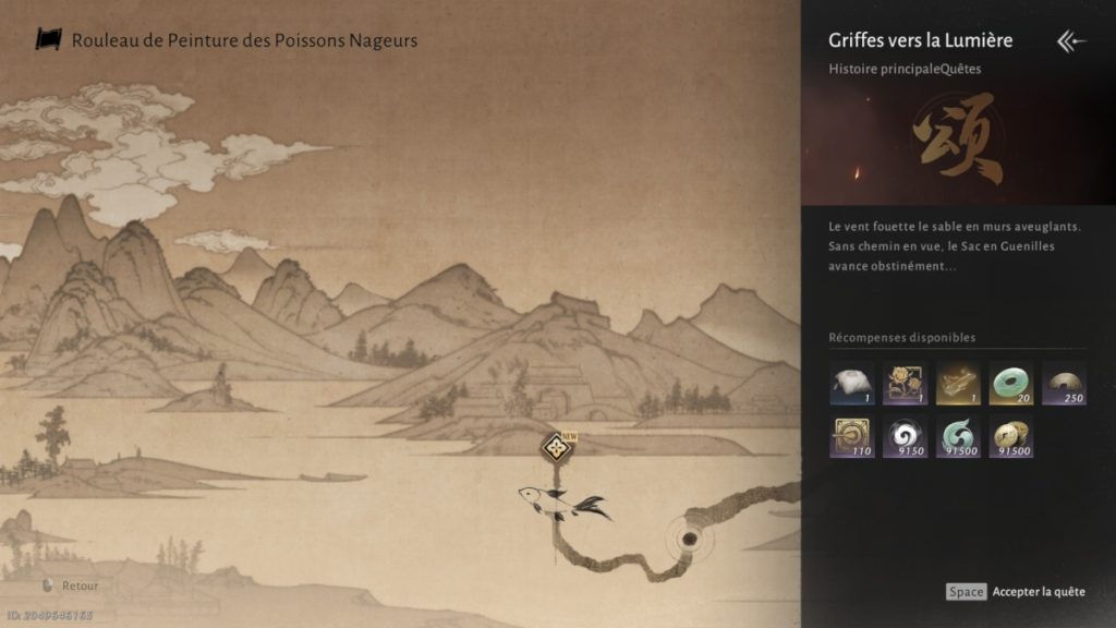 Pour y accéder, vous devrez d’abord progresser dans l’histoire principale jusqu’à atteindre le niveau 41. Une fois cette étape accomplie, examinez l’aquarium situé au sommet du gigantesque navire échoué à Karez afin d’obtenir un mystérieux parchemin. Celui-ci ouvre la voie vers cette longue quête narrative qui se déroule principalement dans la région de la Passe de la Porte de Jade, dans le territoire d’Hexi.