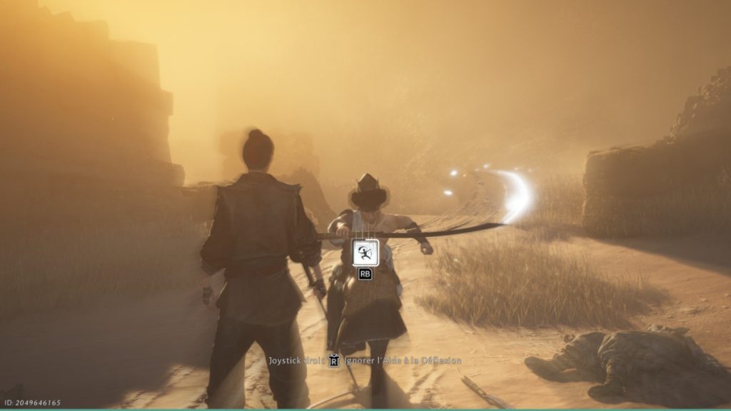 En restant à couvert derrière des tonneaux, vous repérez finalement le sac que Hu vous avait dérobé. Mais la situation dégénère rapidement lorsque Xiaolian tente de s’enfuir avec lui. Les patrouilles de Black Water interviennent, et vous êtes entraîné dans un combat utilisant l’Épée Tang. Le duel repose sur une mécanique simple : parer les attaques ennemies puis contre-attaquer au bon moment. Vous pouvez à tout moment activer ou désactiver l’aide à la déflexion.