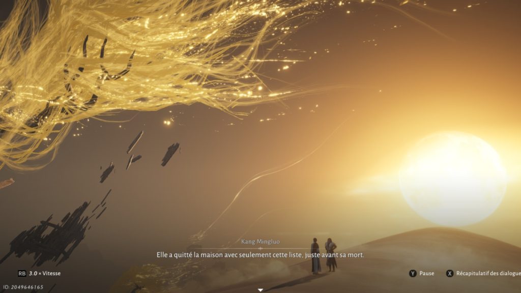 Dirigez-vous vers le nord pour récupérer un registre caché sous une structure en bois, puis rapportez-le à Kang Mingluo. La suite vous demande d’explorer la zone pour ramasser des objets et de grimper un grand peuplier grâce à vos capacités de déplacement pour trouver un journal au sommet. Après lecture, retour automatique auprès des PNJ : suivez Grand-mère Yang une dernière fois et inspectez un puits asséché pour conclure la quête et débloquer les interactions associées, dont Gu Yuehu et Gong Ge.