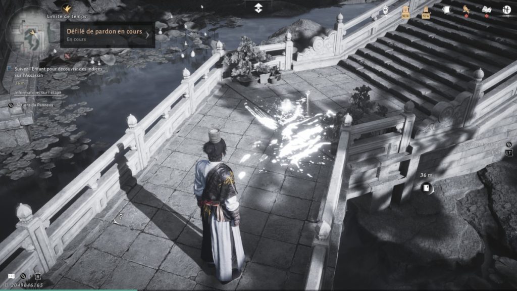La quête bascule ensuite dans une phase d’infiltration : Chengzong vous entraîne dans une filature sur les toits. Être repéré entraîne un redémarrage immédiat de la séquence.