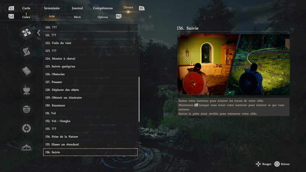En effet, il existe via le menu une section qui va vous sauver la vie : pour ce faire, rendez-vous dans votre Menu, allez à la section « Divers », puis le sous-titre « Aide ». Ici, vous verrez qu’absolument toutes les notes et astuces y sont répertoriées, avec alors les commandes, les quêtes, l’aventure, les astuces de non-combat, l’équipement spécial, l’équipement abyssal, la gestion du camp et enfin les mini-jeux.