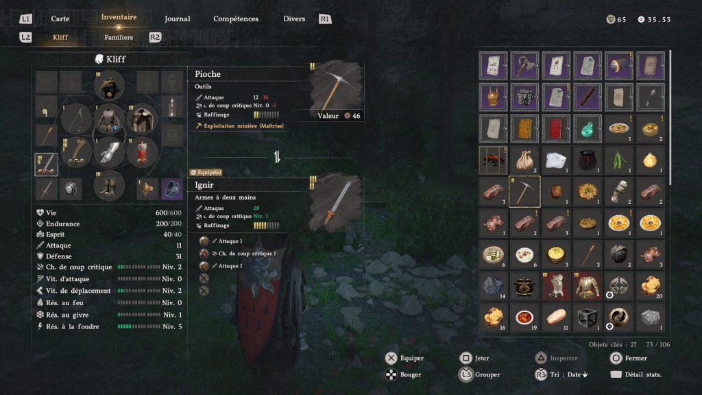 L’inventaire dans Crimson Desert