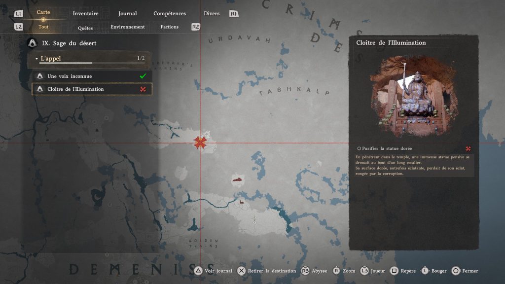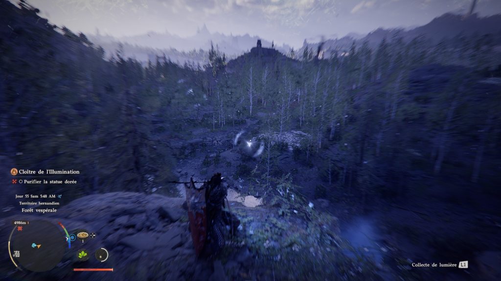 Sinon, vous pouvez utiliser votre épée pour les repérer, avec L1+R1 (compétence reflet de lumière) : vous verrez alors une lumière scintillante au loin et cela signifie qu’un TP s’y trouve.