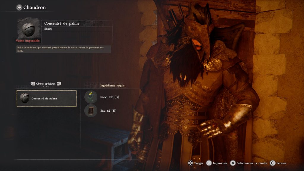 Comme nous le disions, le Concentré de palme est un élément essentiel du jeu : il permet en effet de revenir à la vie lorsque l’on tombe, et octroie 30% de votre état de santé. Et dans Crimson, il y a plusieurs manières d’en obtenir.