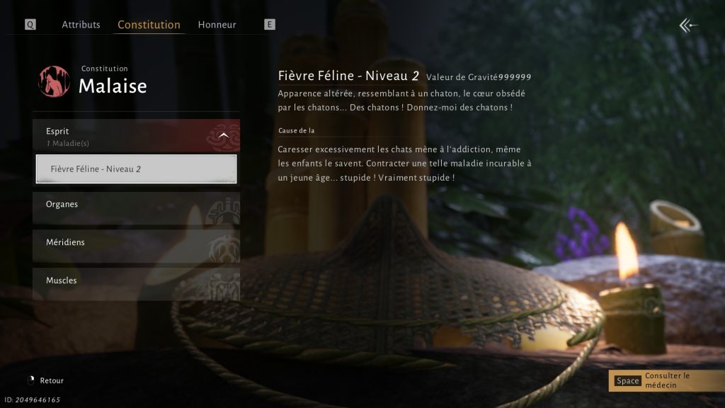 L’Immortel Chat-ismatique propose un marché simple : guérir la fièvre en échange de votre allégeance. En théorie, il est possible de refuser cette offre si votre statistique d’État d’esprit dépasse 60 points. Dans le cas contraire, l’acceptation devient obligatoire.