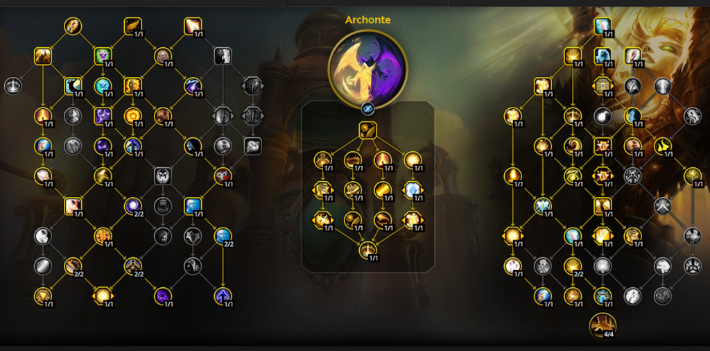 - Apothéose : Un sort de soutien redoutable avec un temps de recharge moyen. Il permet à vos sorts Mots sacrés de se recharger 200% de plus vite quand vous lancez des sorts qui en réduisent la durée. Redoutable en cas de besoin de lourds soins sur une durée assez importante, à utiliser autant que possible, surtout en Mythique +, inutile de le garder sous le coude trop longtemps.