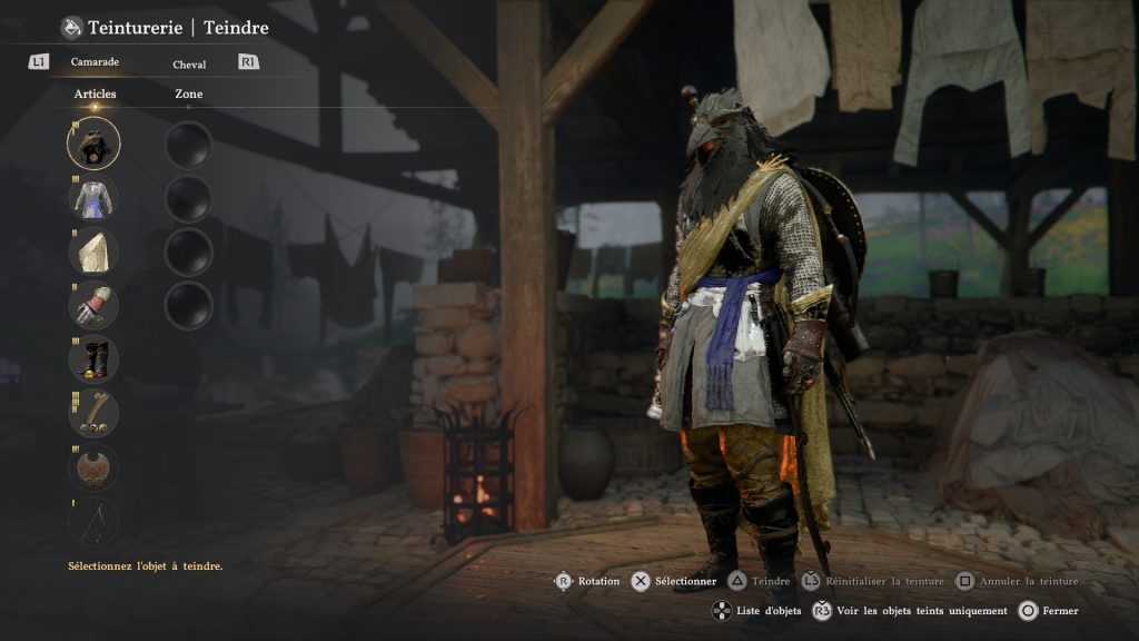 Pour personnaliser, teindre son équipement à travers Crimson Desert, il n’y a rien de bien compliqué. En effet, vous allez pouvoir débloquer ce petit plus via une quête donnée par Naira, qui trouve que les couleurs du camp sont bien trop moroses, ou bien en vous rendant directement à un teinturier : il y en a un au sud d’Hernand.