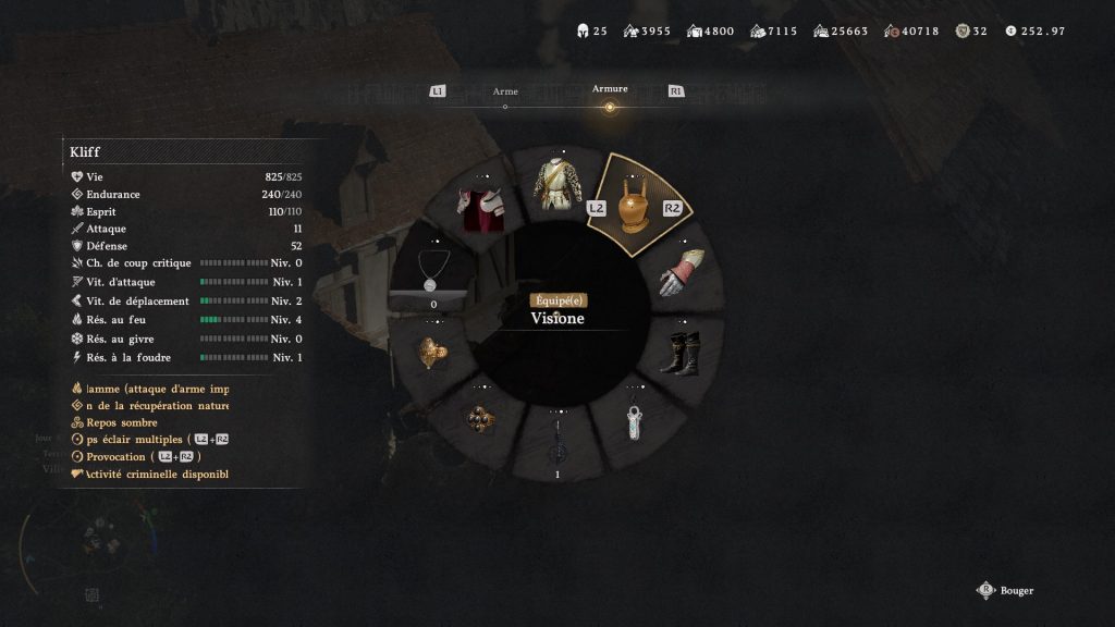 Sinon, vous pouvez toujours passer par le menu circulaire du jeu, aller dans « Armure » puis sélectionner le casque (mais c’est plus long).