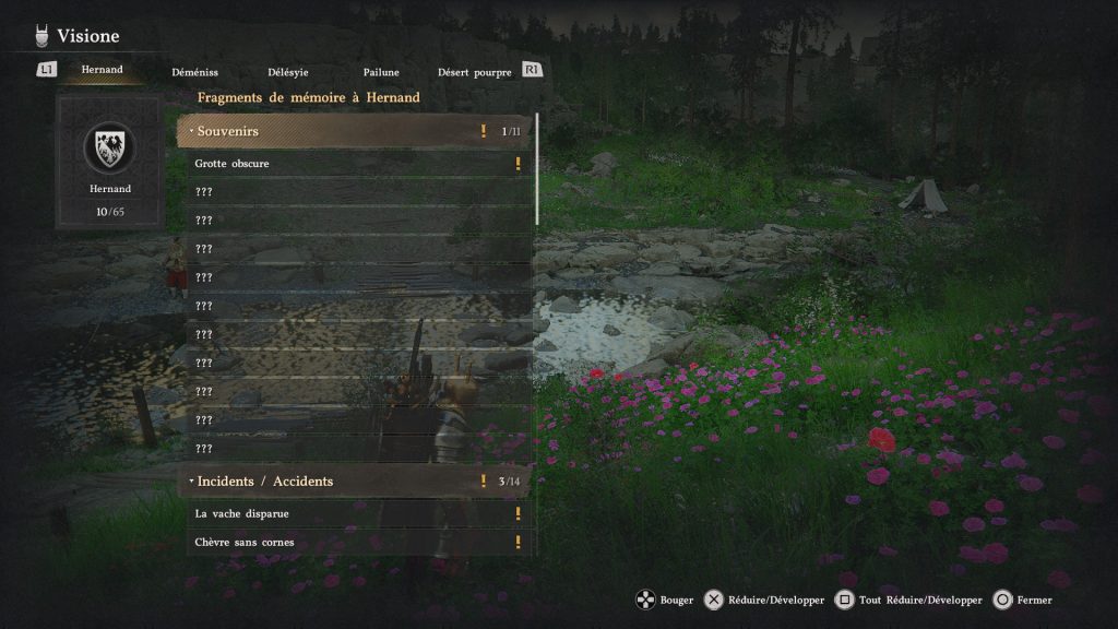 De plus, si pour une raison ou une autre vous n’avez pas bien suivi le souvenir que vous étiez censé regarder, vous y avez toujours accès même après. Pour cela, sélectionnez le casque via le menu circulaire du jeu, puis, vous allez voir une page apparaître : sur celle-ci, se trouvent les différentes villes du jeu, avec, tous les souvenirs à découvrir mais aussi ceux que vous connaissez déjà. Sélectionnez celui qui vous intéresse pour le voir de nouveau.