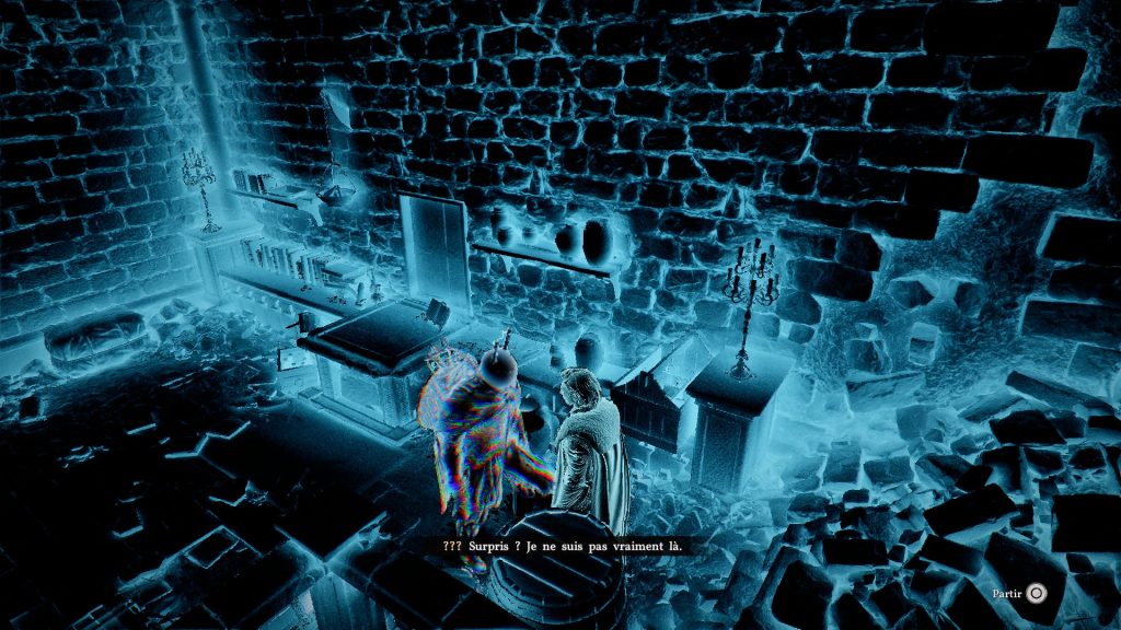 Pour se servir du Visione, vous allez avoir, dans la majeure partie des cas, besoin de votre lanterne. En effet, lorsque vous allez arriver dans un endroit où il faut visionner un souvenir, votre lanterne va se mettre à scintiller, avec alors une lumière bleue. Par la suite, vous allez voir comme des particules apparaître, puis la barre qui indique que vous êtes en train de découvrir un souvenir : une fois ce dernier reconstitué, vous n’avez plus qu’à appuyer sur la touche demandée pour enfiler directement le Visione (la touche « option » sur PS5).