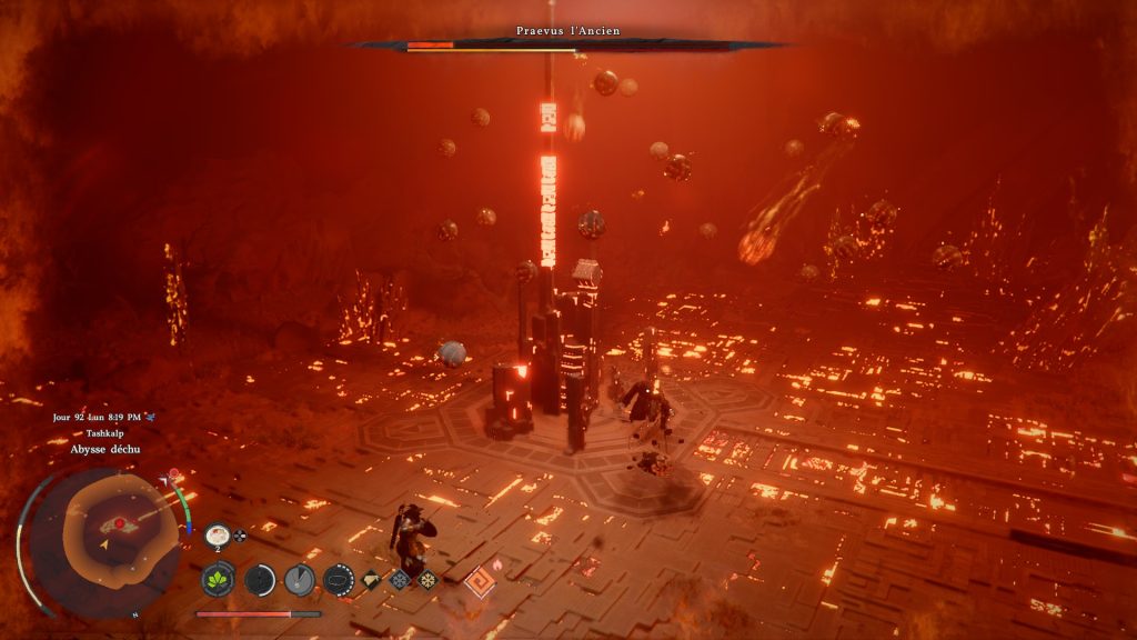 Cette fois, direction le sud de Crimson Desert, pour aller affronter Praevus. Ici, la difficulté est le fait que toute la zone est en feu, donc en plus de subit des dégâts de la part de celui-ci, vous subissez également des dégâts de feu. Prenez soin d’avoir beaucoup de nourriture avec vous mais aussi des concentrés de palme.
