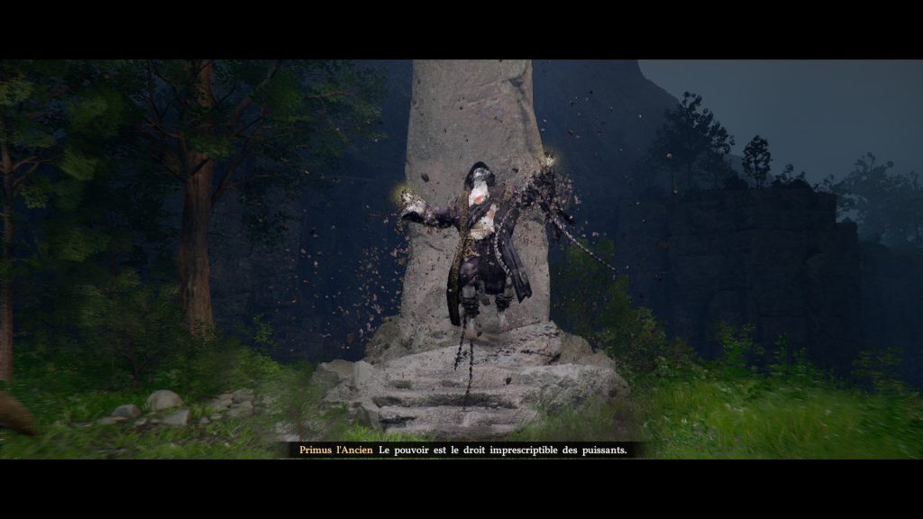 Maintenant, vous allez devoir « éliminer les Anciens », et ces derniers sont donc au nombre de trois. Nous avons Priscus, Praevus et Primus. Pour ces trois combats, nous vous conseillons fortement d’avoir sur votre épée « Orbe d’Ator » ainsi que « Poursuite du corbeau » car ici, nos anciens sont des boss qui volent. De cette manière, même avec des coups d’épée dans le vent, les corbeaux et les orbes se dirigeront sur eux.