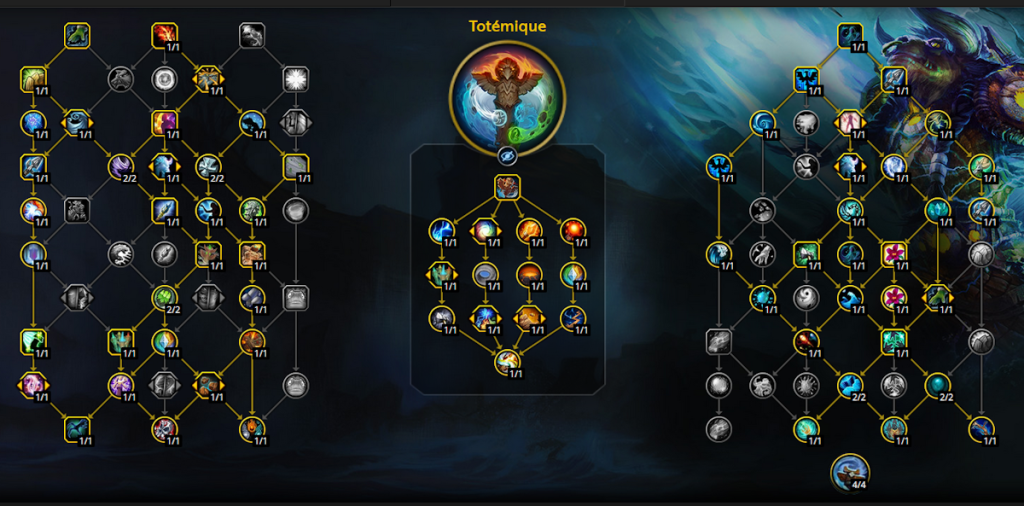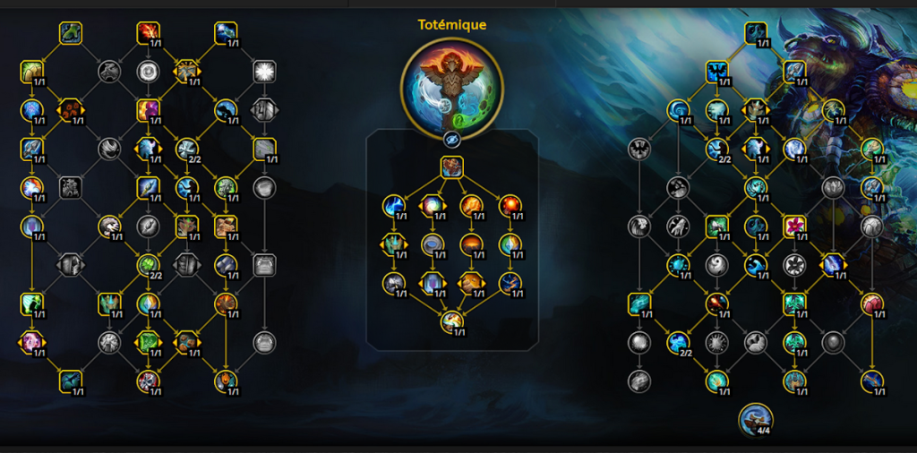 Note : Idéalement, en Mythique + assurez-vous que votre Pluie guérisseuse (invoqué par Totem déferlant) touche les cibles ennemies également puisqu’elle inflige des dégâts avec le talent Pluie acide.