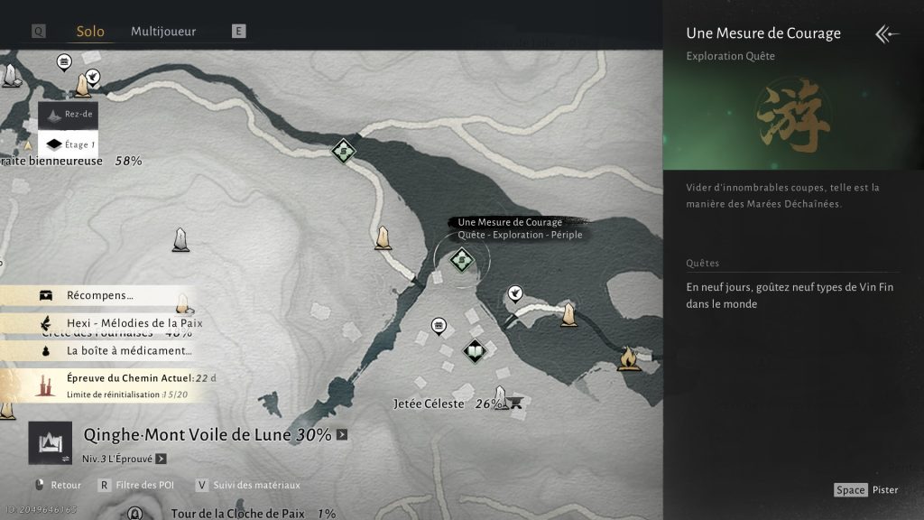 Rendez-vous à la Jetée Céleste pour parler à l’Ancien des Marées déchainées qui vous indiquera la marche à suivre : les 9 vins, que vous devez boire en moins de 9 jours, sont disséminés dans différentes régions. Certains s’achètent, d’autres se gagnent via des interactions sociales, des mini-jeux ou même des compétences mystiques.