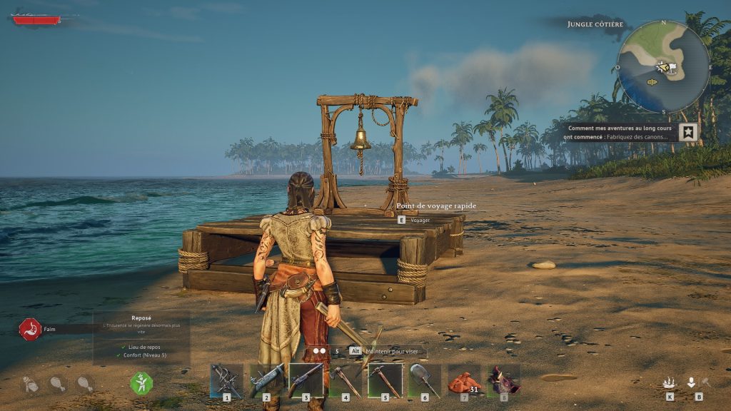 Comme nous le disions, à travers Windrose, les cloches de voyage rapide sont essentielles, et celles-ci se débloquent assez rapidement. En effet, dès le tutoriel, à travers la mission « Comment mon aventure sur la côte a commencé », vous aurez accès à ces dernières lorsque vous aurez récupéré des minerais de cuivre. Le plan se débloquera automatiquement.