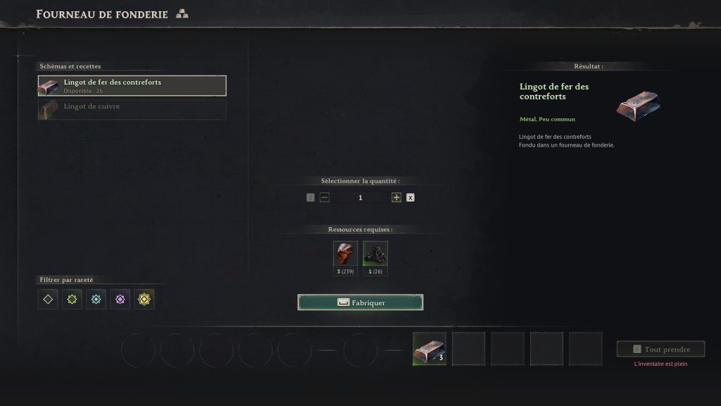 Une fois les lingots de fer fabriqués, vous débloquerez de nouveaux éléments et vous pourrez améliorer vos armes mais aussi votre stuff à un niveau +6.
