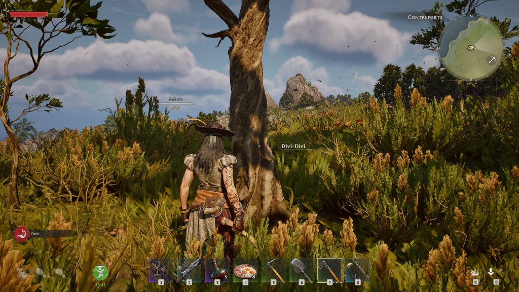 Pour les repérer, c’est simple, ces derniers sont assez imposants et semblent se tortiller sur eux-mêmes et surtout, lorsque vous êtes en face d’eux, leur nom apparaît et ils se nomment « Divi Divi ». Attention, pour pouvoir les couper, il vous faut obligatoire une hache en cuivre. Pour cela, rendez-vous à votre établi, et vous allez avoir besoin de x5 lingots de cuivre, x5 bois.