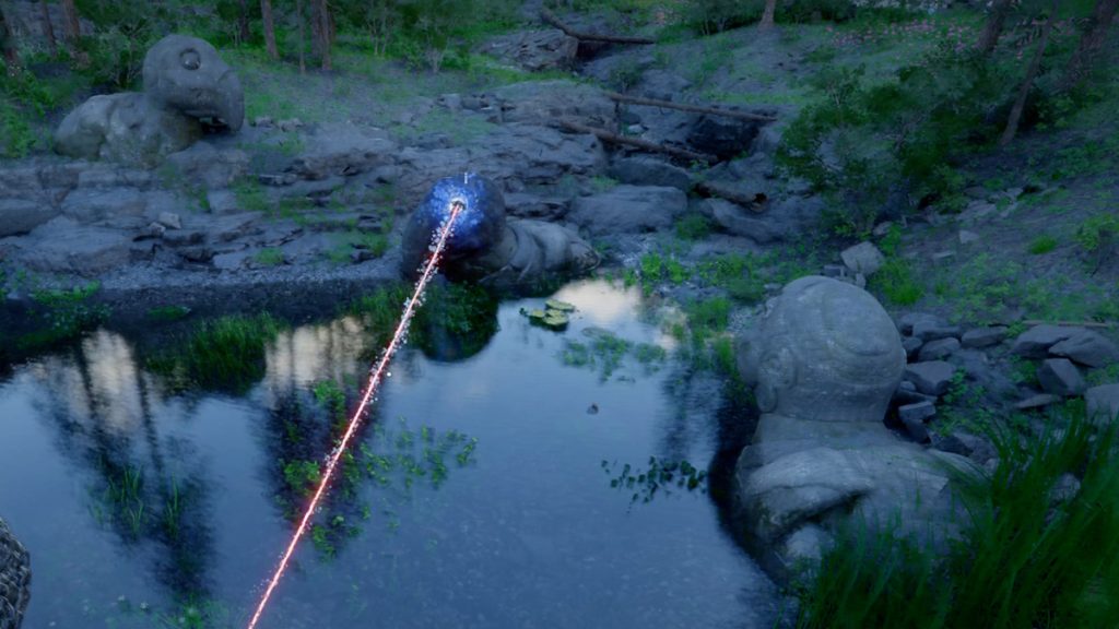 Enfin, le troisième four nécessite l’insertion de plusieurs sphères d’énergie dans des compartiments spécifiques. Certaines sont visibles immédiatement, d’autres demandent un peu d’exploration : une dissimulée dans l’eau, une autre nichée dans l’œil d’une statue, ou encore cachée dans une cavité rocheuse. Une fois toutes les sources d’énergie en place, l’activation du levier déclenche enfin la remise en marche complète.