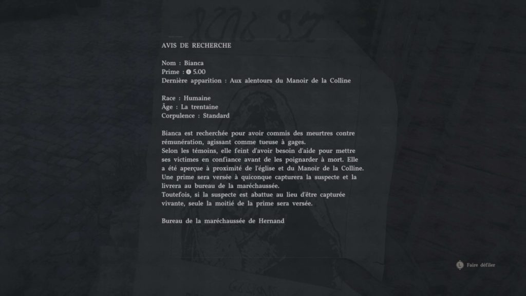 Bianca se cache à l’est de la ville de Hernand, dans les environs d’une église située non loin du Manoir de la Colline. Il suffit pour le moment de suivre le marqueur de quête.