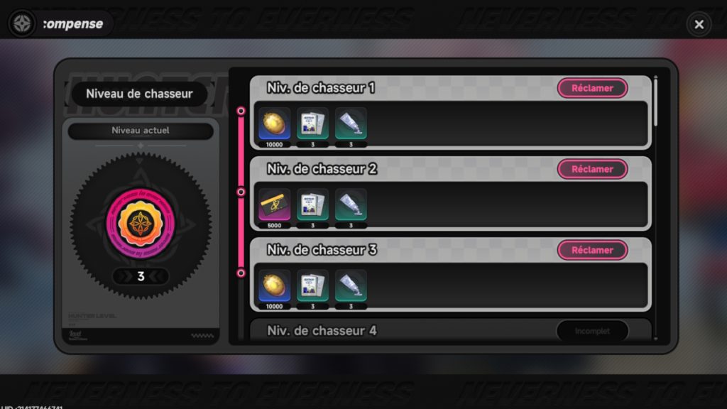 Le niveau de chasseur agit comme un niveau global de compte. Il débloque les modes de jeu, les chapitres narratifs et la majorité des fonctionnalités. Il progresse via l’exploration, les quêtes et la dépense d’endurance. Mais certains contenus, comme les commissions d’anomalies, offrent un rendement particulièrement intéressant en expérience et en ressources d’invocation.
