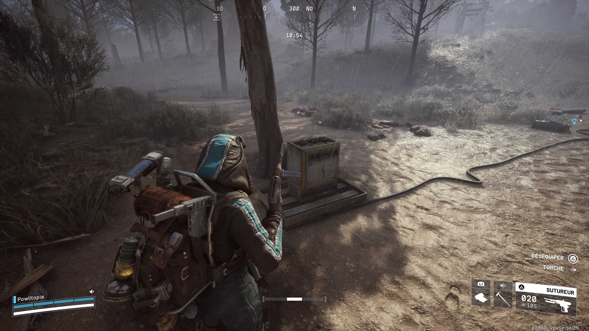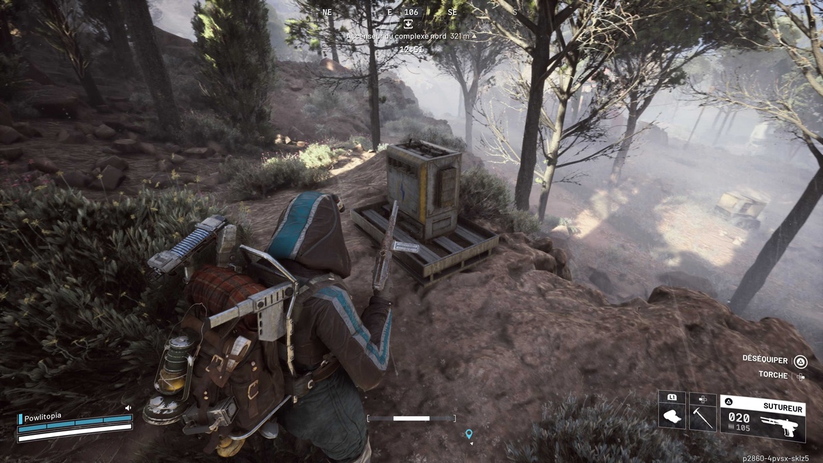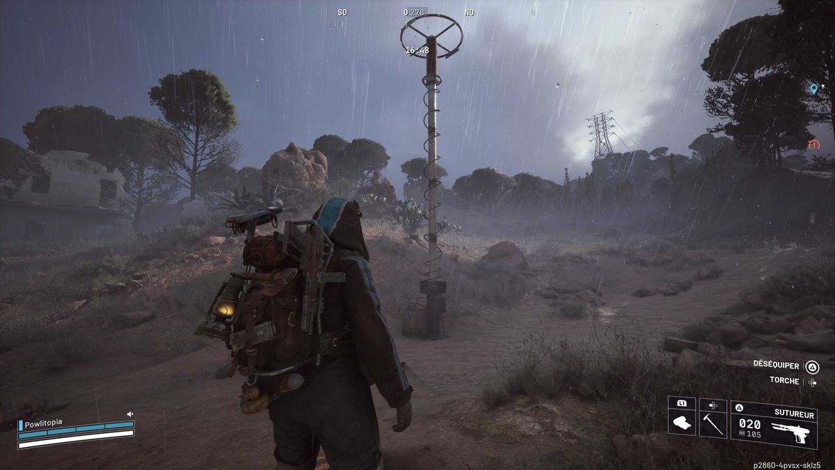 Une fois là-bas, vous trouverez un tout petit bâtiment en ruines, et non loin, votre premier objectif : la tour IEM. Ici, vous devez interagir avec en appuyant sur la touche