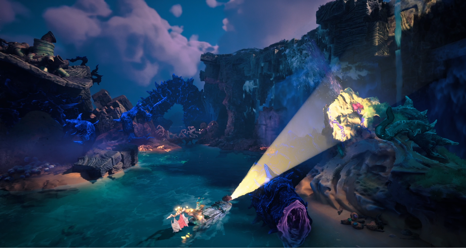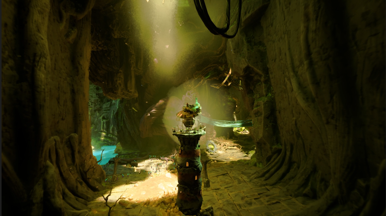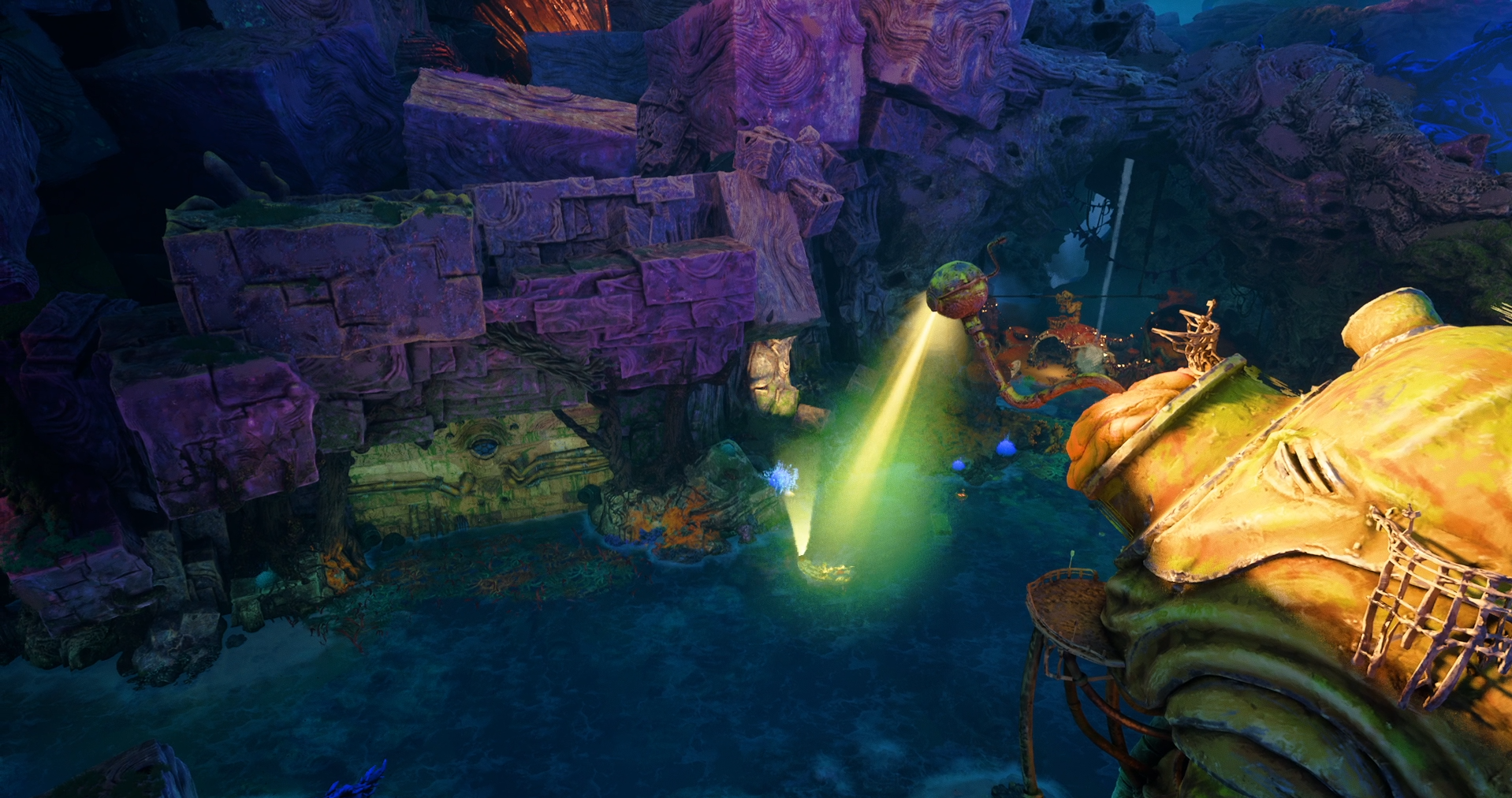Après avoir ouvert la grande porte grâce à l'aide du faisceau lumineux du gardien du verrou, avancez jusqu'au prochain puzzle pour libérer la bouée au fond de la caverne. Sur votre gauche, un passage dérobé vous mène à un tremplin.