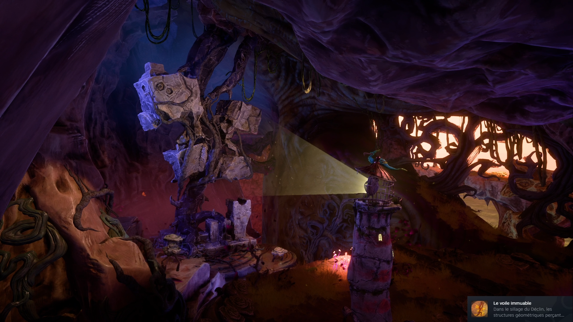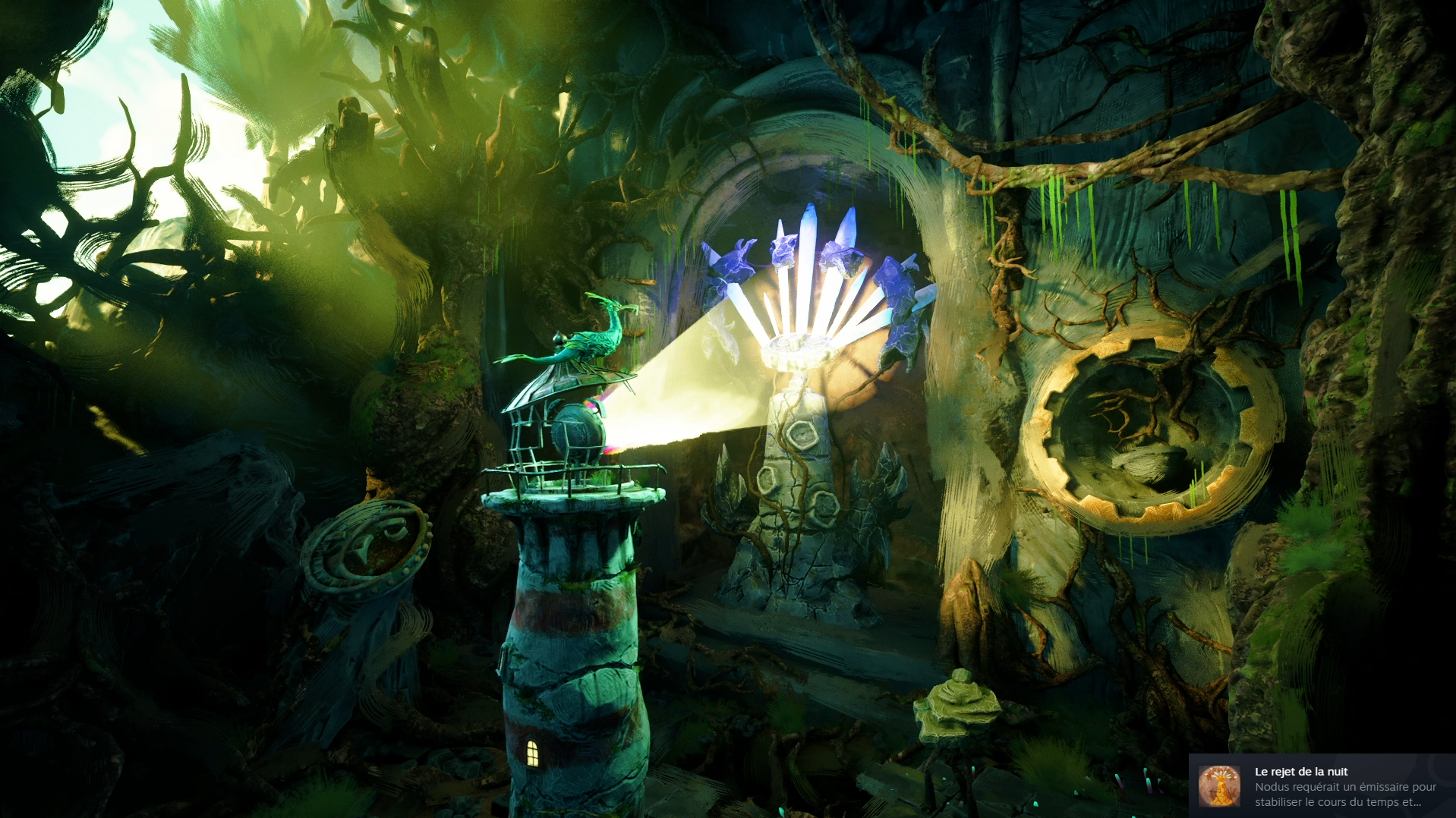 Après les épreuves du cadran, suivez le chemin jusqu’à être au bord d'une falaise. Sur votre gauche, vous pouvez constater un passage dérobé. Utilisez la lumière concentrée du Phare pour révéler une cavité où se trouve le succès.