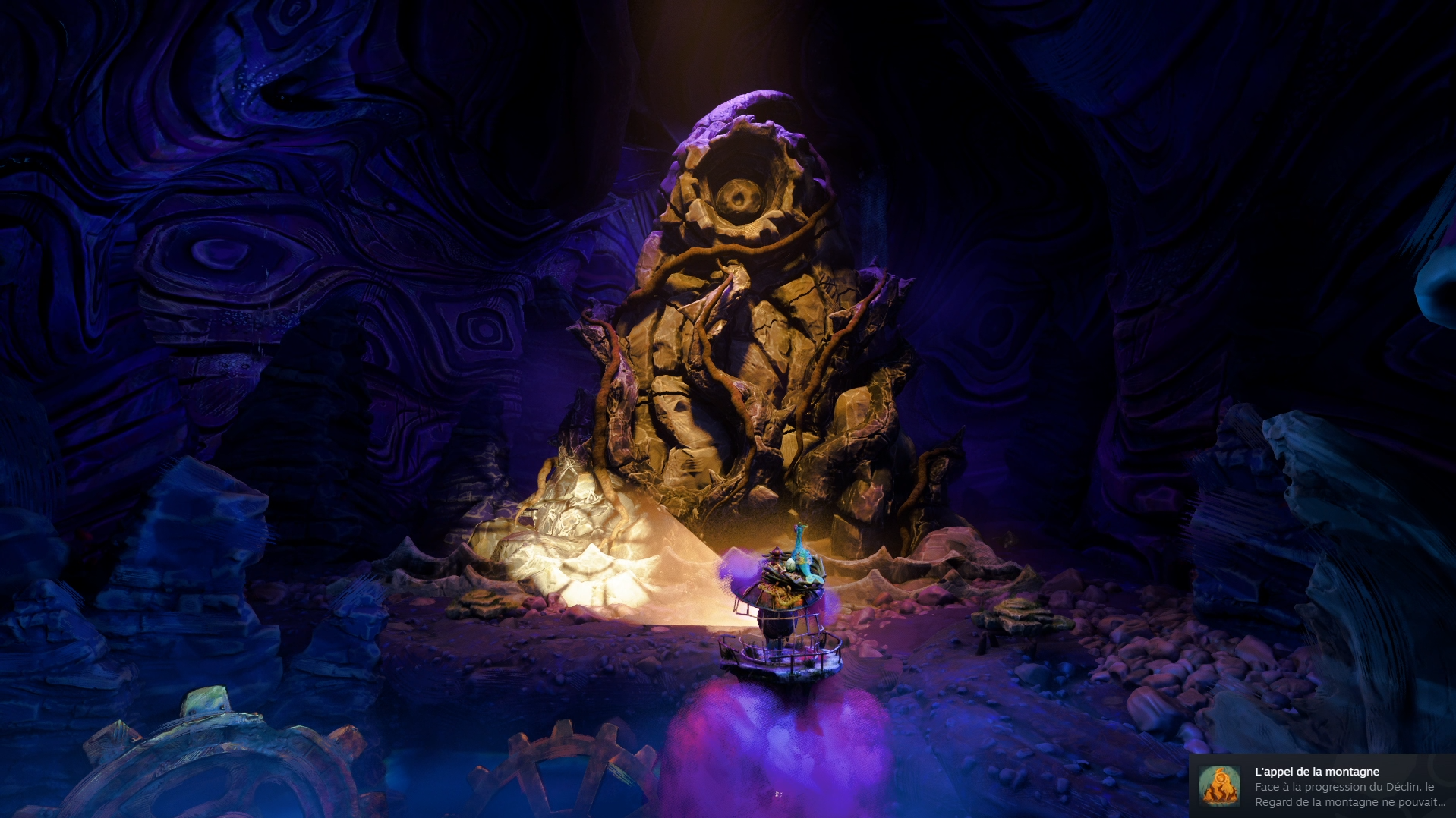 En arrivant sur la zone, une cinématique montre plusieurs directions. Le dernier mouvement de caméra présente un mécanisme aux abords d’une cascade sur la droite de l'itinéraire. Résolvez-le pour dissiper l’eau et révéler la cavité dans lequel se trouve le succès.