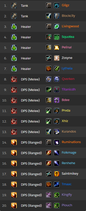 Avant d’entrer dans le raid, les guildes préparent différentes compositions pour venir à bout de chaque boss. Les classes alternent en fonction des rencontres, et il est intéressant de comparer
