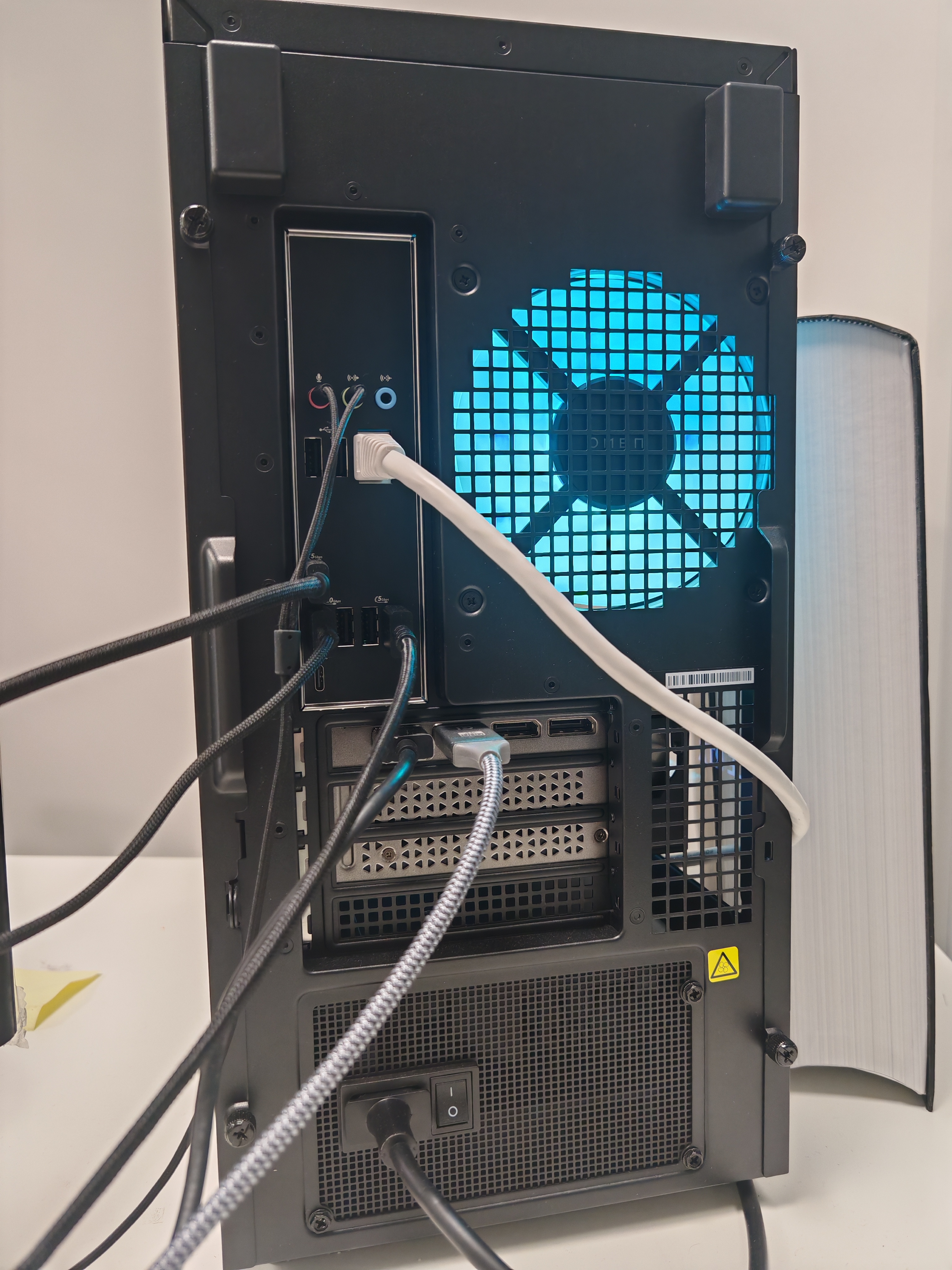 Le OMEN 35L GT16-0452nf propose une connectique généreuse, avec deux ports USB-C (dont un en façade), six ports USB-A, et trois DisplayPort pour les amateurs de configurations multi-écrans.