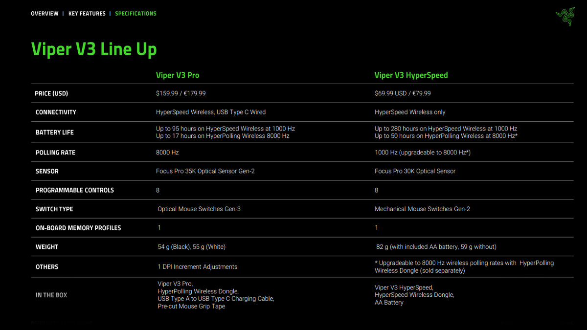 - DPI Sensitivity Matcher : Cette fonctionnalité permet aux utilisateurs d’ajuster précisément la sensibilité de la Viper V3 Pro pour correspondre à celle de leur ancienne souris,
