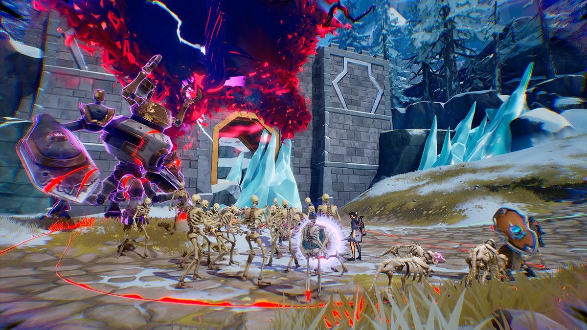 Les boss, souvent inspirés des zones qu’ils défendent (ours médiéval, oiseau de glace, robot moderne), sont plutôt simples sur les premiers niveaux de difficulté. Mention spéciale au volatile glacial, dont les attaques AOE manquent un peu de lisibilité, rendant le combat plus frustrant qu’intense.
