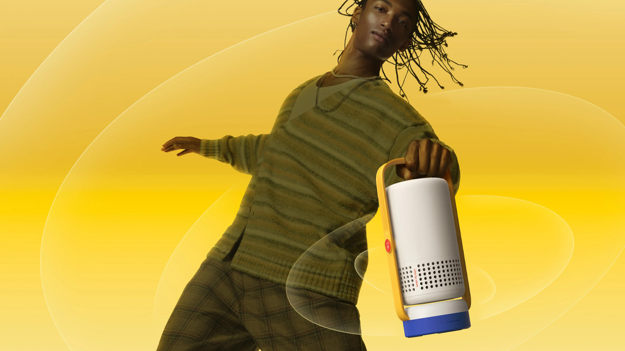 Le XGIMI Vibe One en pleine action : son design cylindrique avec poignée jaune le rend ultra-portable, idéal pour les soirées improvisées. Ce petit bijou cylindrique (30 cm de haut, poignée intégrée) pèse à peine 1 kg et pivote à 160° pour viser n’importe où. Autofocus laser et correction trapèze auto : en 5 secondes, image nette sur 60-120 pouces. Parfait pour projeter un match de Ligue des Champions ou une série Netflix sur un drap tendu en jardin, ou alors sur un mur blanc à l’intérieur d’un appartement. En plus, y’a des Stickers perso inclus pour un look fun.